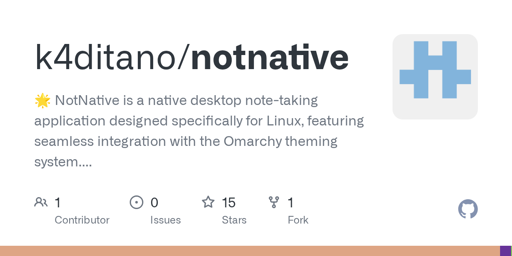 cm0002@suppo.fi · 13 hours agoNotNative is a native desktop note-taking application designed specifically for Linuxplus-squaregithub.comexternal-linkmessage-square7linkfedilinkarrow-up117arrow-down17