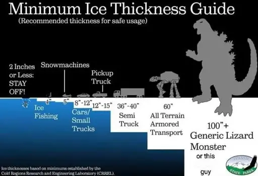 That said, the trouble with ice thickness is measuring it without stepping on it.