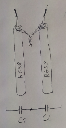 The additional high voltage durability of the serial coax capacitor is nice, (should be now 5kv, since a single RG58 has 2.5kv) but i doubt i gona need that with my 4W Tx ^^