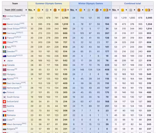 Soviet Union was also a collection of many countries too. If you added all the former USSR countries medal tallies up over the 35 years, I wonder what if it would be closer. Also it shouldn’t be forgotten that other countries have got a lot better during that time and the USSR was also big into doping.