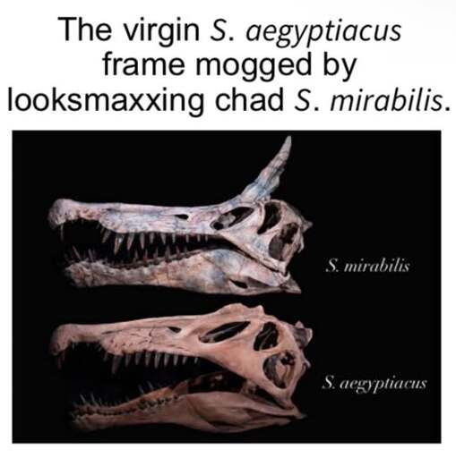 fossilesque@mander.xyzM to Science Memes@mander.xyzEnglish · 2 months agoS. aegyptiacus is a subhuman cope skull. S. mirabilis has the nasal crest looksmax, the forward jaw projection, the elongated temporal fenestra.mander.xyzimagemessage-square3linkfedilinkarrow-up188arrow-down19