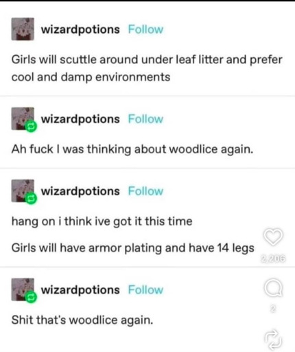 minus-square5715@feddit.orglinkfedilinkEnglisharrow-up6·7 days agoI was 8 when I learnt thoroughly that not everyone wants to switch place with woodlice for a day when waiting for the school bus. 06:45 during an autumn storm would be much better as a woodlouse underneath comfy foliage.