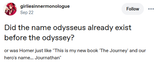 Odyssey no longer feels like a word. Damn you, semantic saturation!