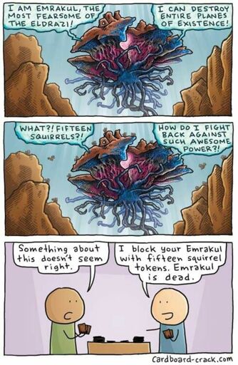 The real flaw with the comic is that Emrakul has flying, so squirrels can’t block it anyway, unless you give them all flying.