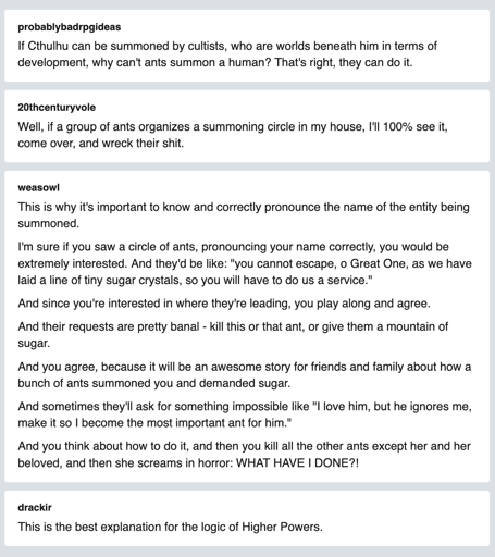 So, yeah, this does make sense. If some “lesser being” shows strong intelegence, it makes sense that a “higher being” would just do whats asked of them for the story or just rewarding them for being smart.