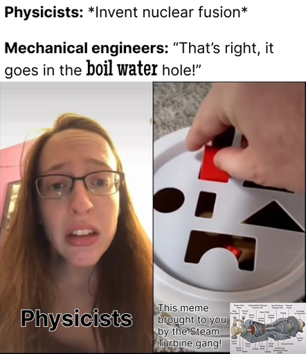 minus-squareNapster153@lemmy.worldlinkfedilinkEnglisharrow-up6·7 days ago“That’s it?! That’s the nuclear power? That’s just boiling water!” Ancient meme I had back in the day…