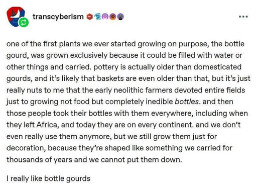 The gourd is used traditionally to administer enemas. Along the upper Congo River an enema apparatus is made by making a hole in one end of the gourd for filling it, and using a resin to attach a hollow cane to the gourd’s neck.[52]