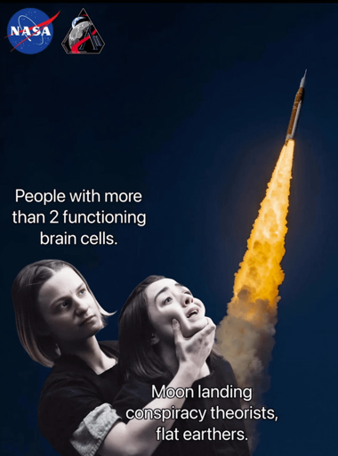 Nobody: “I was unconvinced by eight crewed missions to the Moon, but if they do a ninth then I’ll have no choice but to accept all of them.”