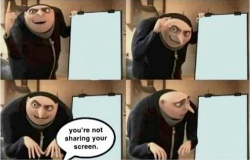 Also me: “ugh YOU FORGOT TO SHARE YOUR SCREEN idiot”
