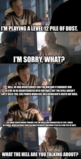 Well I didn’t start as a pile of dust. I became one via a RAW spell.