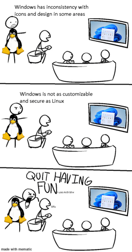 A new Linux user posting an anti Linux meme on a Linux community, on Lemmy. Well, I wish I had a tenth of your courage.