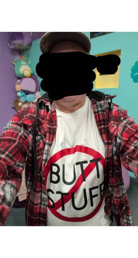 The text is layered on top of the “prohibited” sign, making butt stuff not actually prohibited.