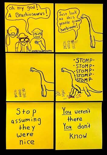 Anyways, the point is that the herbivores we know today will often eat meat if it’s an easy meal. There’s no reason to think that a brachiosaurus would be any different.