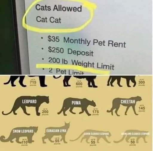 Perhaps it’s cumulative. 200lbs worth of cats total.