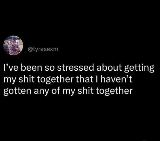 I googled ‘how to get my shit together’ and it said I needed to have my finances in order as a first measure. So that’s pretty much it. I’m going to go live outside now. I’m just gonna hunt and gather.