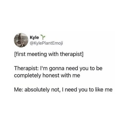 It definitely told my therapist a lot when I said to her, “I can be honest with you because I don’t need you to like me. I’m paying you for a service.”