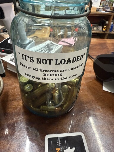 The town I used to live in has to have signs in the laundromat to remind people to check their pockets for ammo.