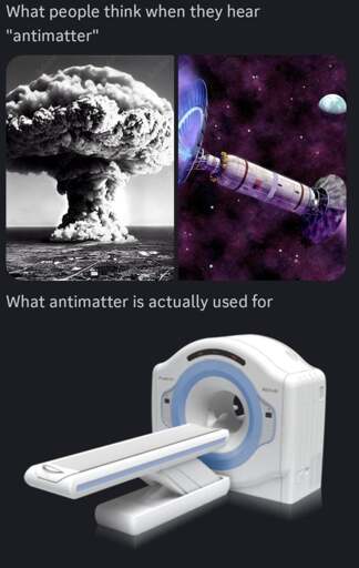 The aforementioned ring is a PET scanner’s detector array. (The machine at the bottom of this meme is a PET scanner.) So if you put a living thing in the PET scanner that has eaten or been injected with something that is undergoing positron emission, you can tell where in their body the position emission is happening.