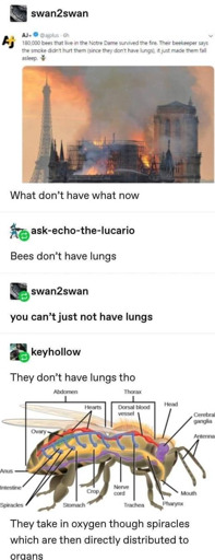 So if I understand you correctly, if I remove my lungs, I’m a bee? My aunt had lung cancer, so they’ll probably kill me, anyway. I’ll report back on the results.