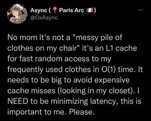 Well maybe you should quit making excuses and sort your closet so that it has better access performance