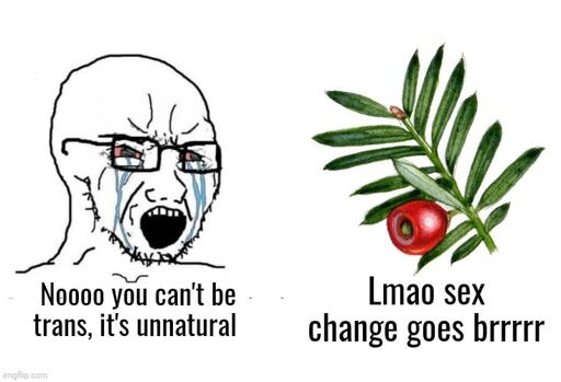 True. I do I think a human could internally decide to be trans, make any or no changes, declare it to others and still be valid as trans. Humans just really value certain observable indicators to tell what’s going on. There’s some kind of interesting metaphor about how humans being this way gives us a lot of interesting freedom to express ourselves but also limits us in many ways overlaid with what the tree is doing.