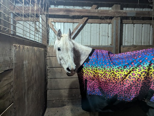 This week is supposed to have cool, rainy days and cold nights. Switched her to the lightweight blanket so she can stay dry and not get too hot in the day, but have a lil something to keep her warm at night.
