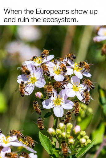 Isn’t this one about foreign bee species, such as honey bees, are introduced into ecosystems where they outnumber native bees? And they eat all the nectar but do a horrible job of pollinating so the situation ends up worse? Sounds like colonization, not racism.