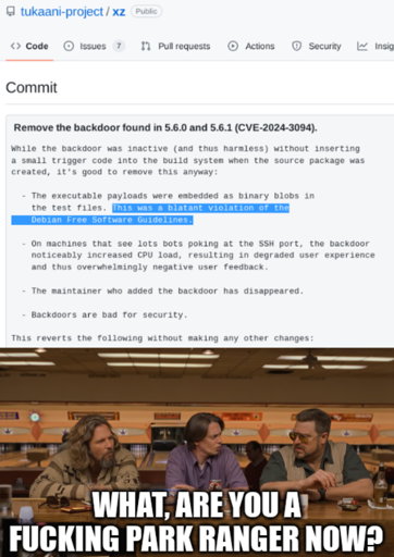 I’m still lost… I’ve been following the XZ thing since it broke, so I get the context, but I’m not sure how the meme at the bottom is connected?
