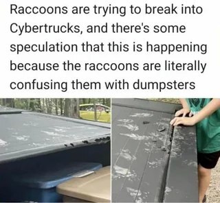 arrow-up1345arrow-down1imageRaccoons recognize a dumpster when they see onelemmy.mlcm0002@lemdro.id to Funny@sh.itjust.worksEnglish · 18 days agomessage-square22linkfedilink