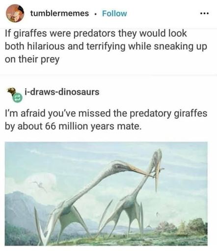 fossilesque@mander.xyzM to Science Memes@mander.xyzEnglish · 2 months agopredatory giraffesmander.xyzimagemessage-square13linkfedilinkarrow-up19arrow-down11