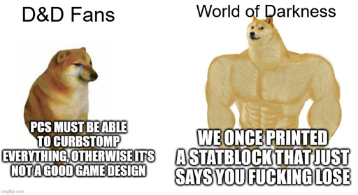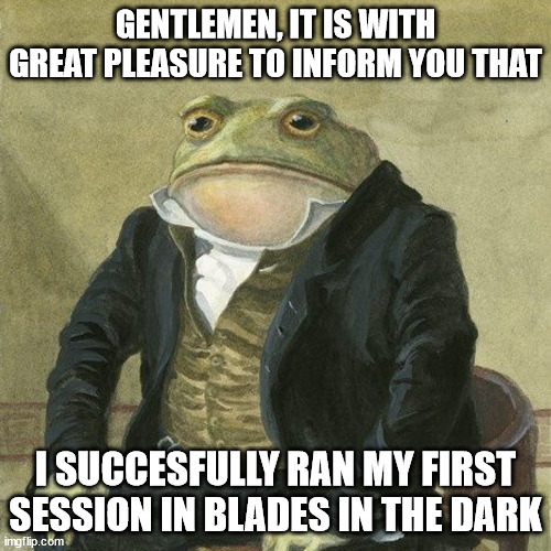 RPGMemes @ttrpg.network•I wouldn't be bringing this back if someone didn't tell me Blades in the Dark "doesn't count" [read description]
