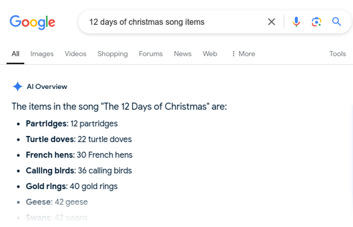 jaybone@lemmy.world to Technology@lemmy.worldEnglish · 1 year agoGoogle AI nails it againlemmy.worldimagemessage-square1linkfedilinkarrow-up10arrow-down11